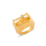 Halka, sistrum çalınırken yapılan hareketleri yansıtacak şekilde tasarlanmıştır. Bu hareketi temsil eden çubuklar üzerindeki serbest diskler. Yüzüğün dış yüzeyi tasarımını tamamlamak için Mısır mitolojisinden hiyeroglif yazıtlar bulunuyor.