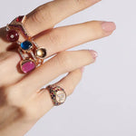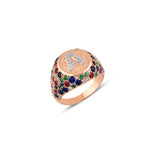 14k rose gold, 0,34 ct pırlanta, 0,61 cr safir, 0,18 ct zümrüt, 0,44 ct yakut.
