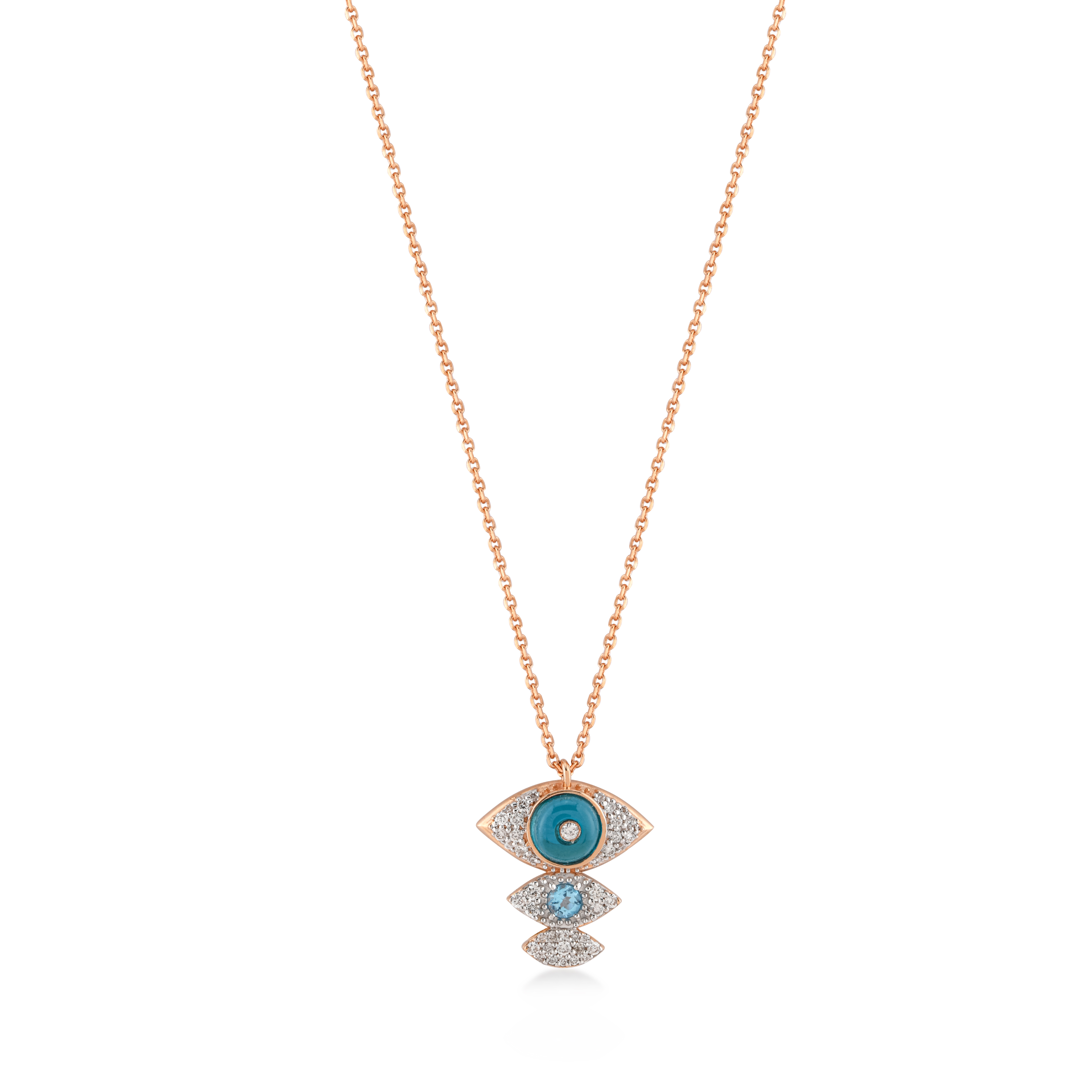 Koruyucu enerjisine inandığımız Meri Krutzo “Guarding Eye” koleksiyonundan “Guarding” kolye; pırlanta ve mavi topaz ile tasarlandı. Işığıyla zarafeti, enerjisiyle korumayı bir araya getiriyor.Kendinize ya da en sevdiklerinize en iyi hediye kolye seçeneklerinden biridir
