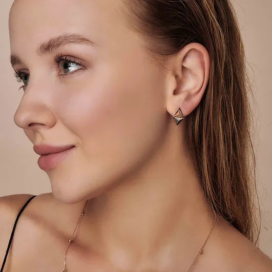 Dengeyi sembolize eden Meri Krutzo "Fulcrum" koleksiyonundan "Icon" küpe; Pırlantalarla tasarlanmıştır.