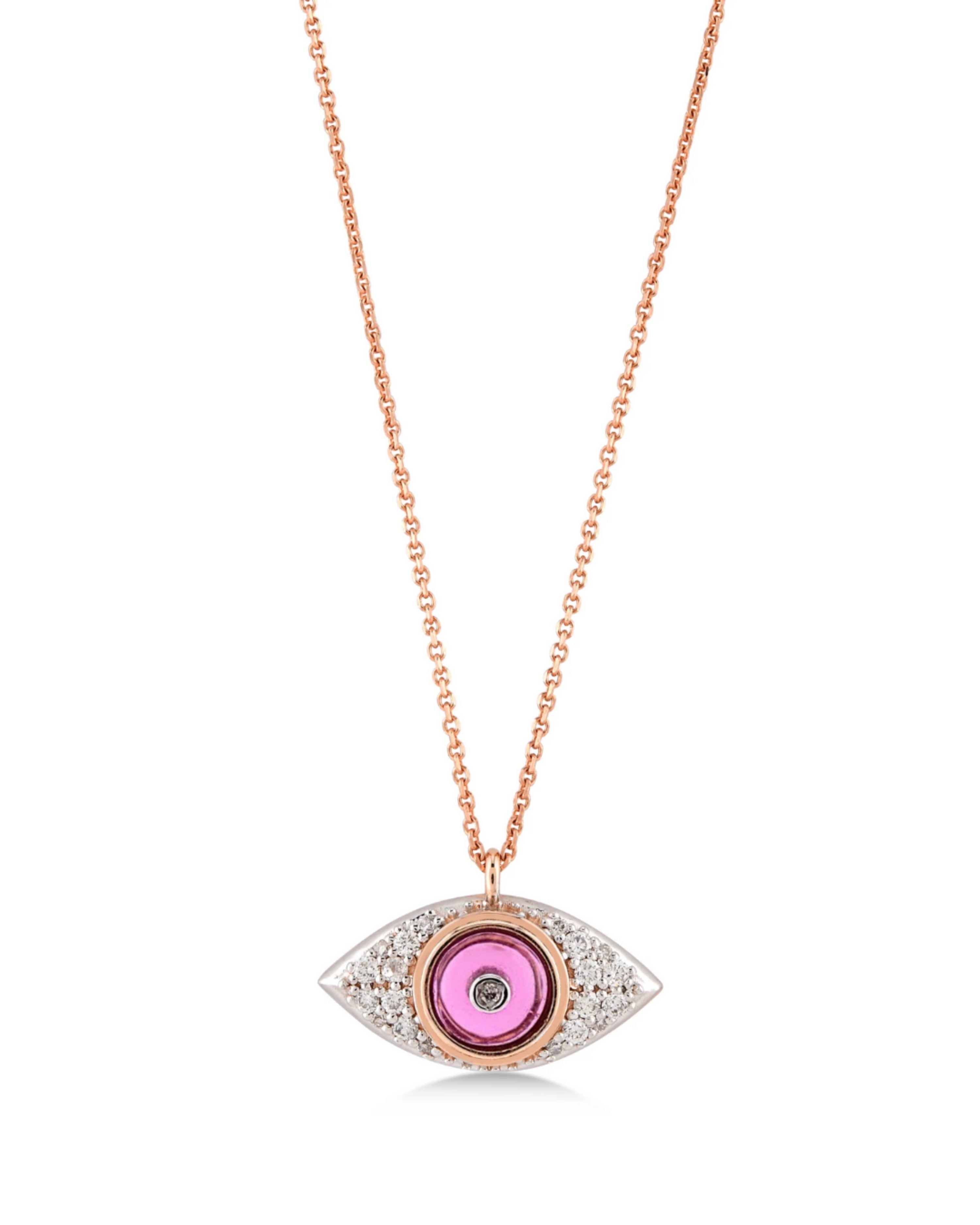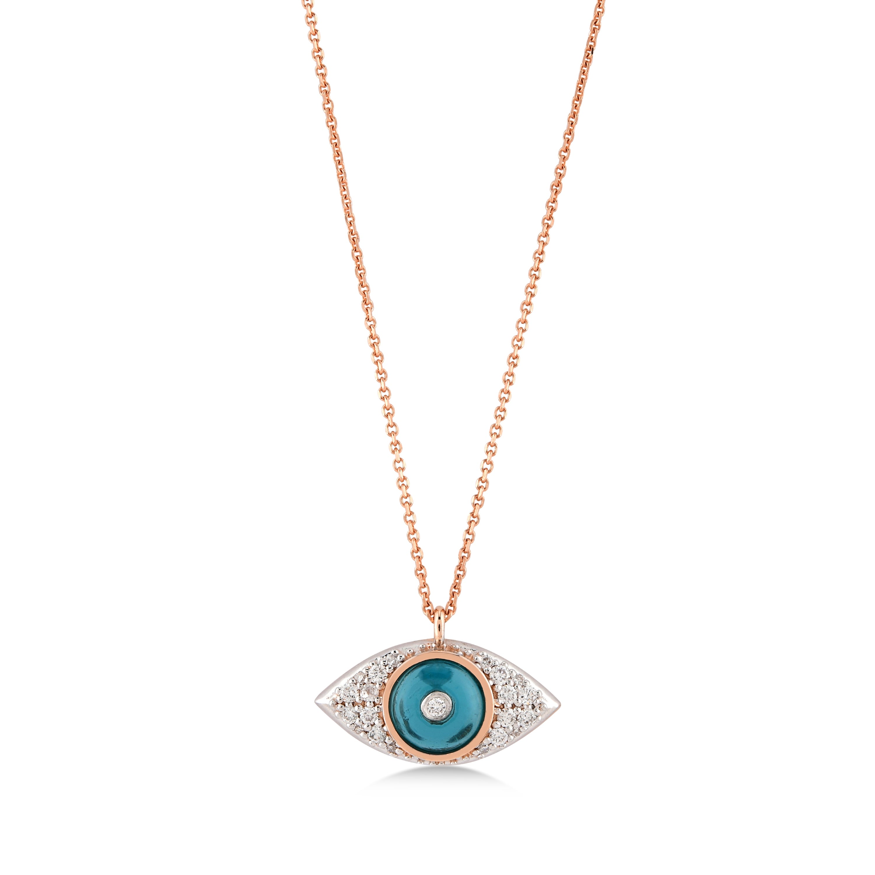 PIRLANTA TAŞLI VE RENKI TAŞLI NAZAR BONCUĞU ALTIN KOLYE - GUARDING KOLEKSIYONU