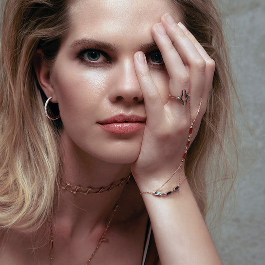 koleksiyonundan "Rectangle" Şahmeran, transparan mine ve pırlantayla tasarlanmıştır.