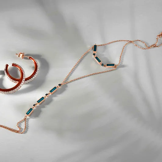 MAVI PIRLANTA TAŞLI,ÇIFT RENK ALTIN ŞAHMERAN - RECTANGE