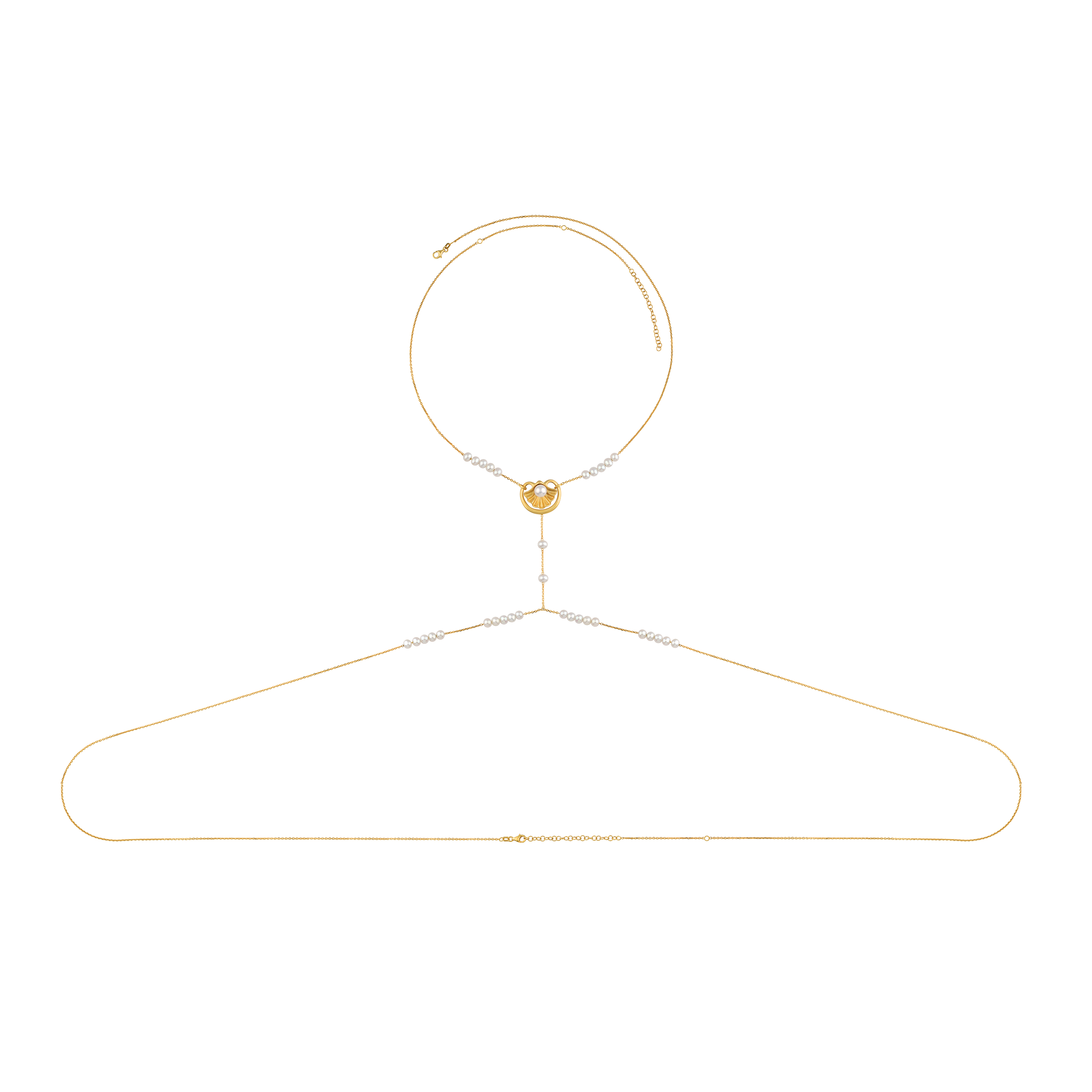 Meri Krutzo’nun imzası niteliğindeki bu vücut mücevheri, bedeni zarifçe sararken dokunmadan kucaklar; kadınlığın akışını takip eder.