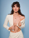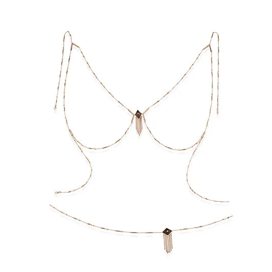 Pırlanta ve smokey topazla tasarlanan vücut mücevheri iki parçadan oluşmaktadır.