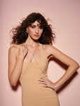 Meri Krutzo’nun imza tasarımlarından biri olan vücut mücevheri, güçlü kadınların stiline modern bir yorum getirirken bedenle bütünleşen sofistike bir şıklık sunar.