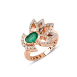 EMERALD AND DIAMOND STONE, WHITE ENAMELED GOLD RING - RISING LOTUS
