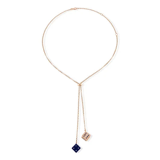 GOLD DICE NECKLACE WITH DIAMOND, BLUE SAPPHIRE AND LAPIS LAZULI STONES - LUCKY LAPIS COLLECTION