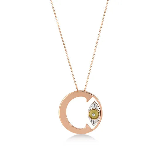 LETTER C, DIAMOND STONE AND LARGE EVIL EYE BEADED GOLD NECKLACE - ME COLLECTION