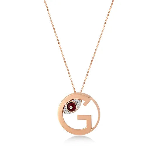 LETTER G, DIAMOND STONE AND LARGE EVIL EYE BEADED GOLD NECKLACE - ME COLLECTION