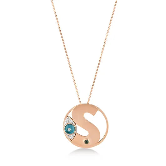 LETTER Z, DIAMOND STONE LARGE EVIL EYE BEADED GOLD NECKLACE - ME COLLECTION