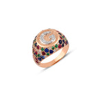 G LETTER GOLD RING WITH DIAMOND, SAPPHIRE, RUBY AND EMERALD STONES - SACRED COLLECTION