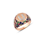 U LETTER GOLD RING WITH DIAMOND, SAPPHIRE, RUBY AND EMERALD STONES - SACRED COLLECTION