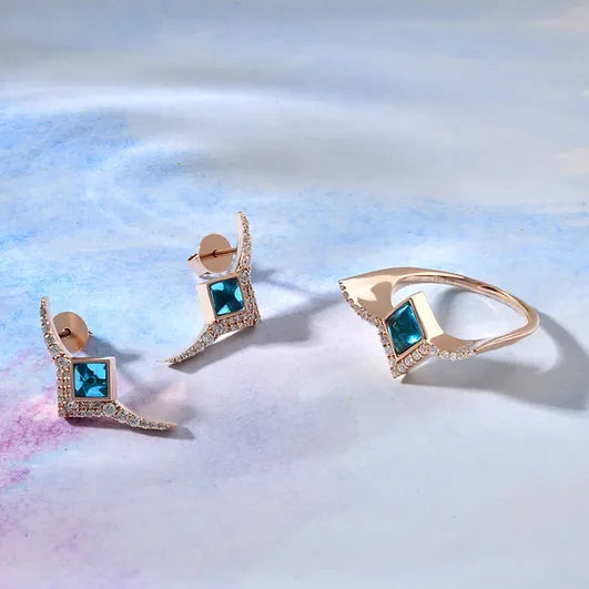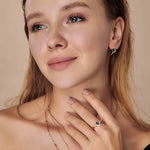 Symbolizing balance, the "Elizabeth" ring from the Meri Krutzo "Fulcrum" collection is designed with diamonds.