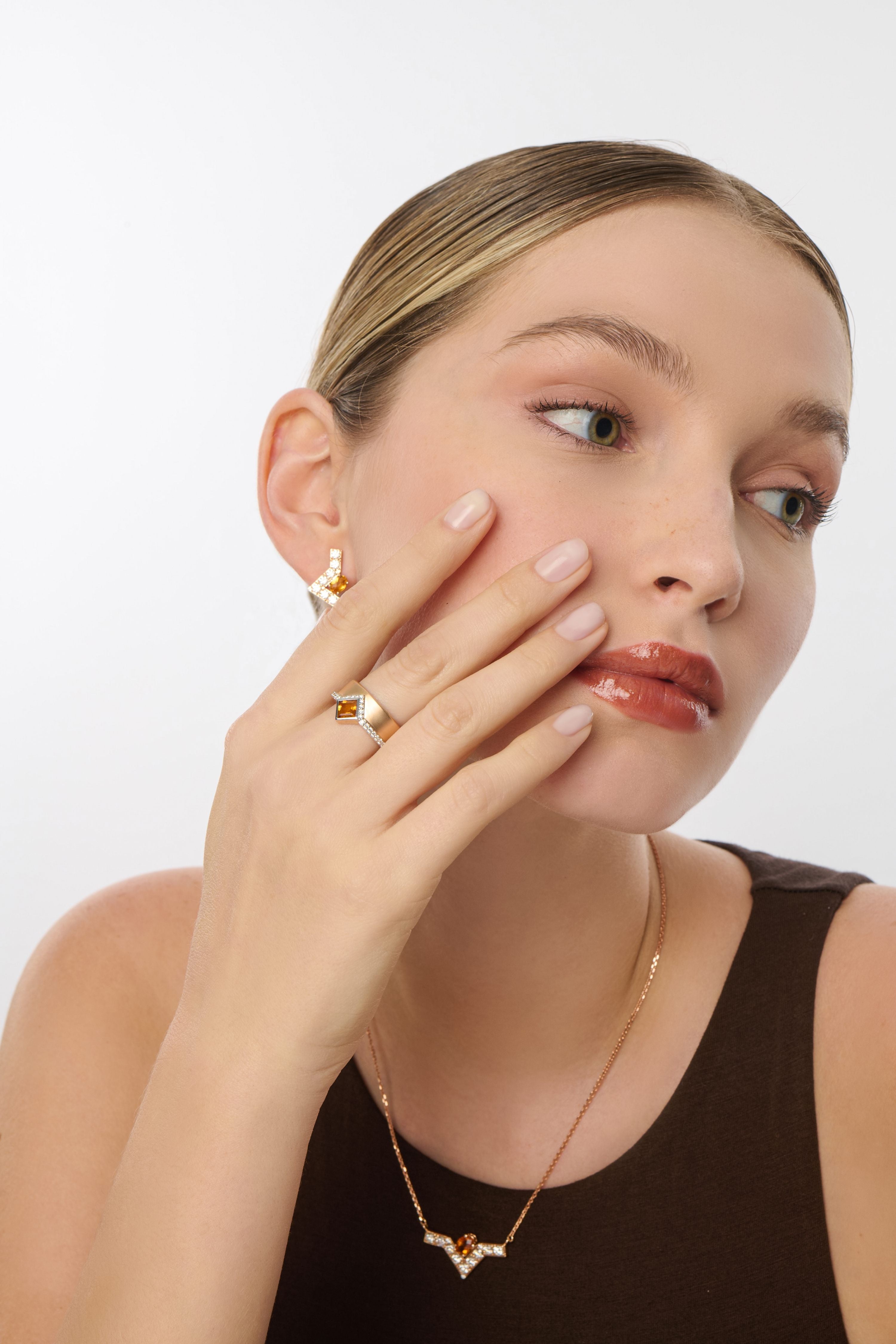 In this design, you can reflect your personal energy with Amethyst, Blue Topaz, Garnet, Smoky Topaz and Green Peridot options, as well as Citrine stone.