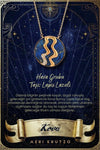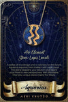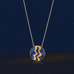 AQUARIUS LAPIS LAZULI AND DIAMOND STONE GOLD ZODIAC NECKLACE