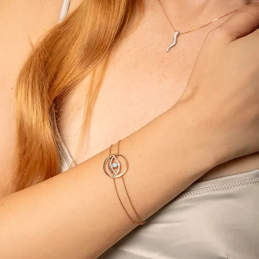 GOLD EYE BRACELET WITH DIAMOND AND BLUE TOPAZ STONES