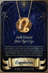 CAPRICORN TIGER EYE AND DIAMOND STONE GOLD ZODIAC NECKLACE