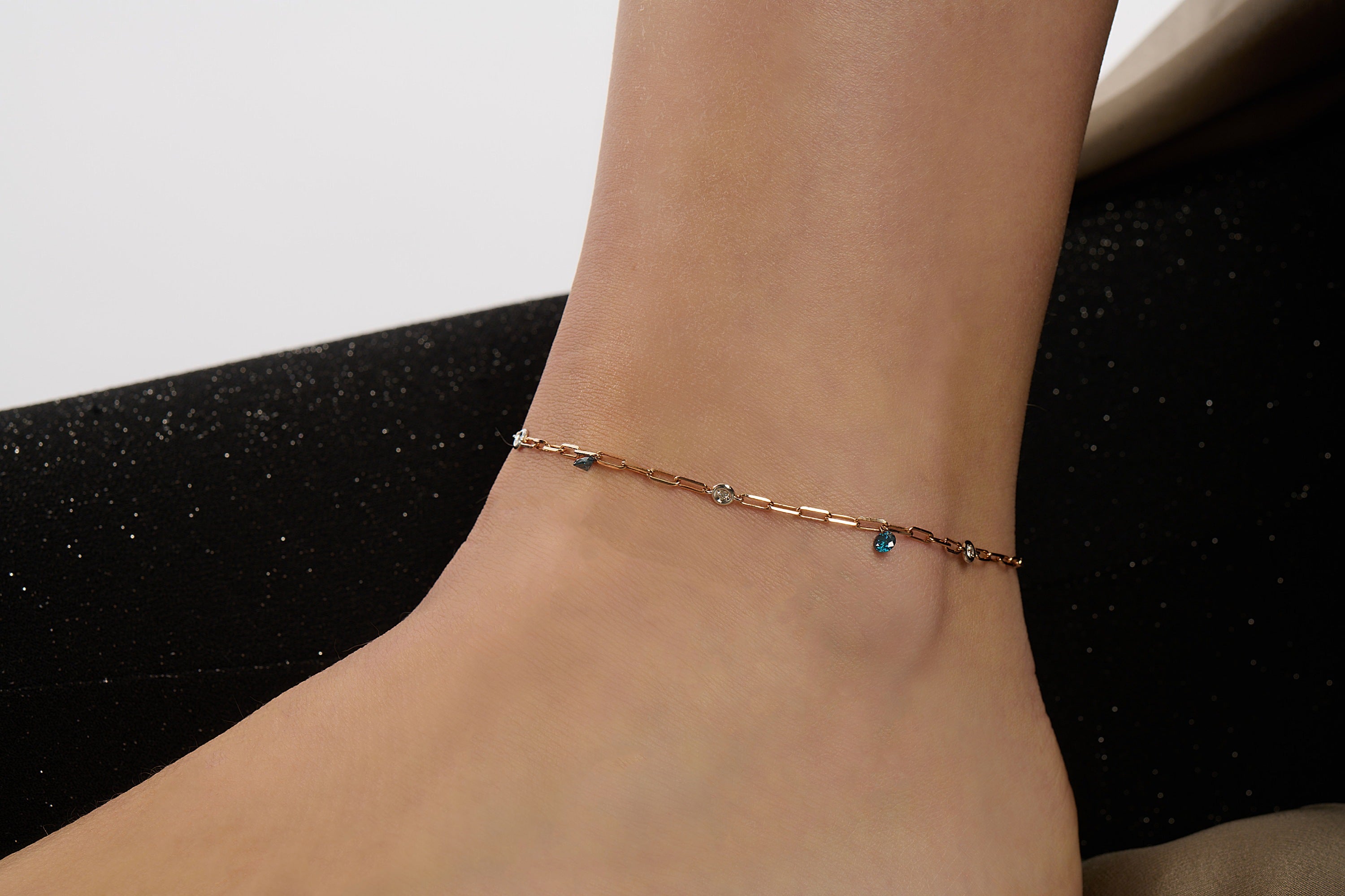 GOLD ANKLET WITH BLUE DIAMOND STONE -CHEERY