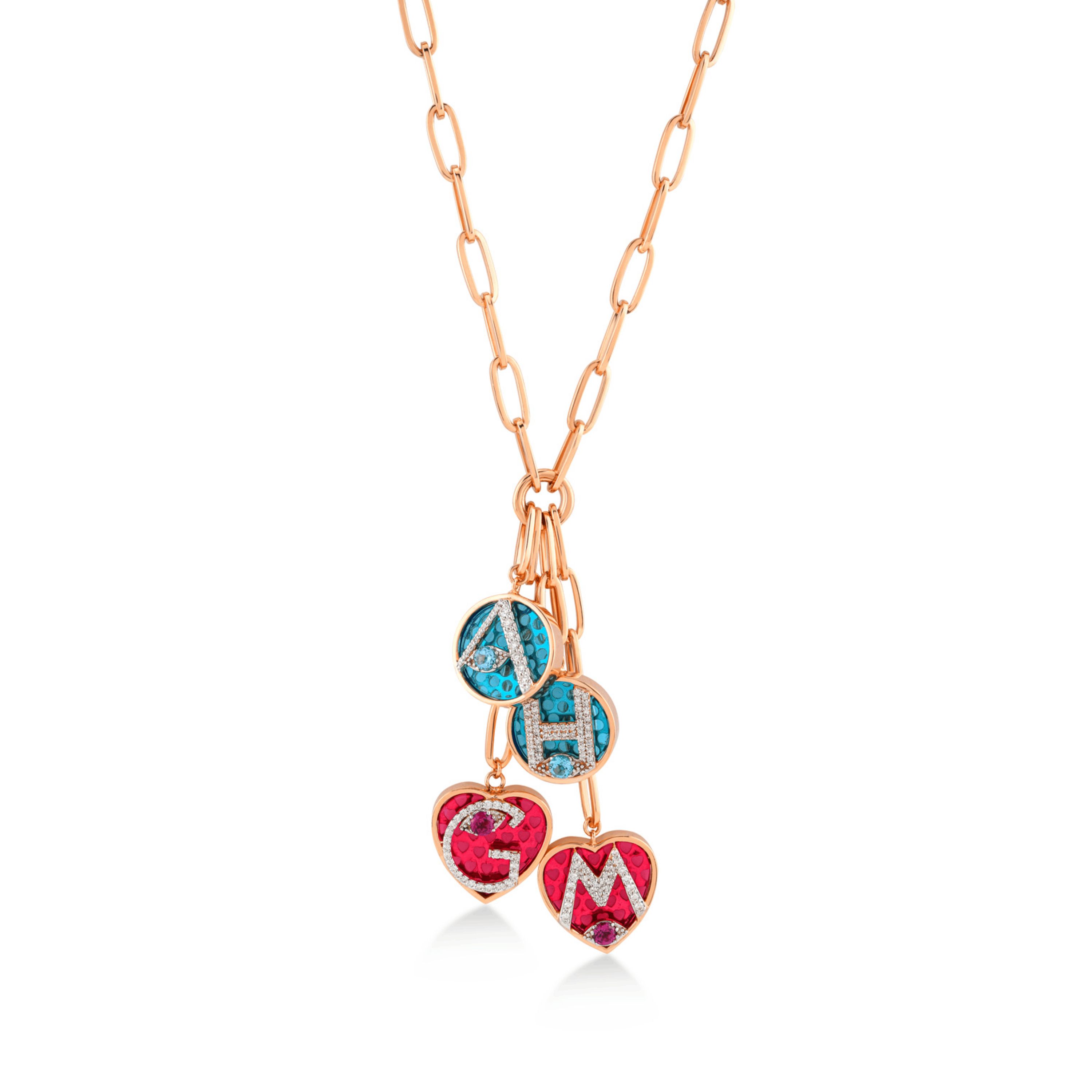 Meri Krutzo "Me" Family Necklaces are designed with special charm chains and personalized with the initials of your loved ones. Crafted with your choice of stone colors, these special necklaces add a meaningful touch to your favorite colors.