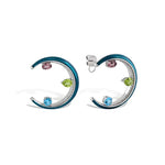 MULTICOLORED, BLUE TOPAZ, GREEN PERIDOT, TOURMALINE AND DIAMOND BLUE ENAMEL HOOP GOLD EARRINGS - LARGE FERRIS