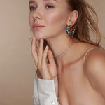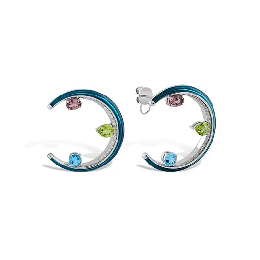 "Ferris" earrings from the collection, diamonds, blue topaz, green peridot and pink tourmaline