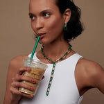 GOLD NECKLACE WITH MALACHITE AND DIAMOND STONES - GREEN OCEAN COLLECTION