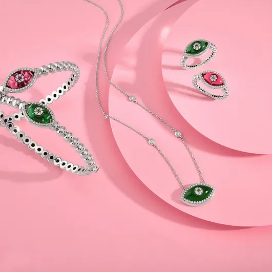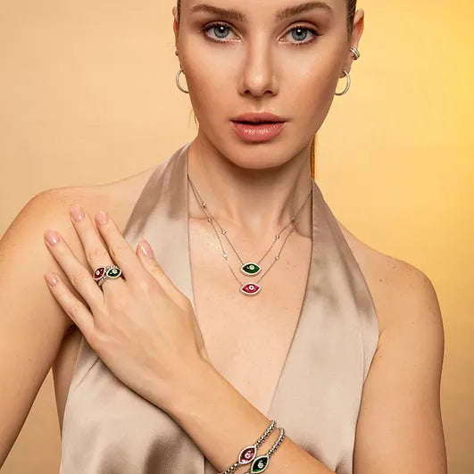The "Divine Eye" bracelet, from Meri Krutzo's "Guarding Eye" collection, which we believe in its protective energy, is designed with the empowering energy of diamonds and savory. With its timeless elegance, it's not just a piece of jewelry but a modern talisman.