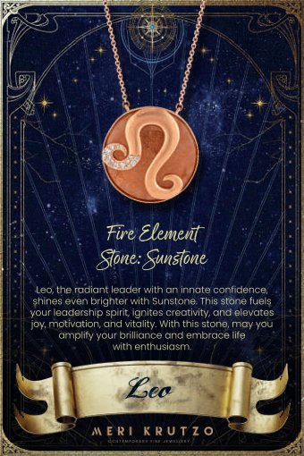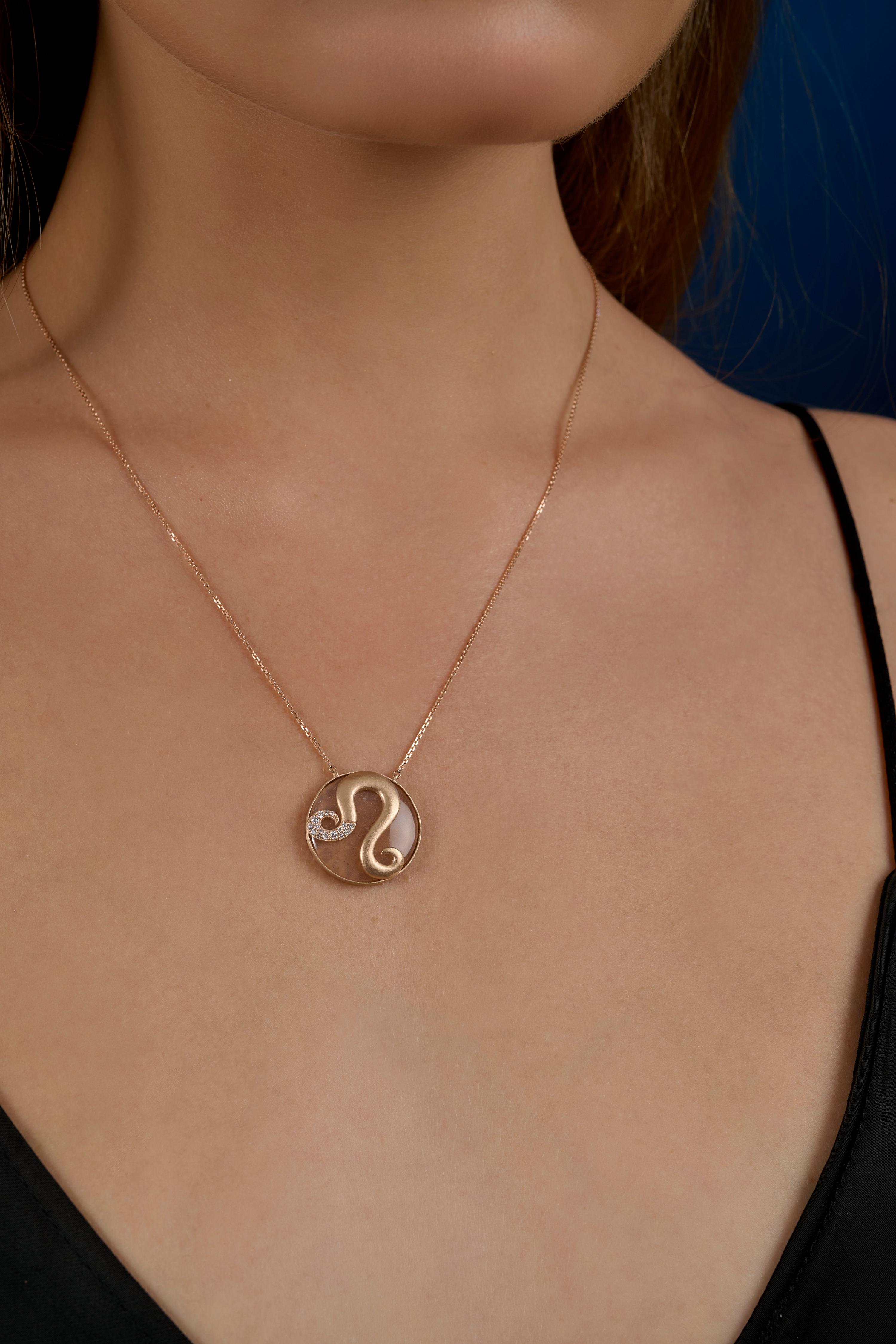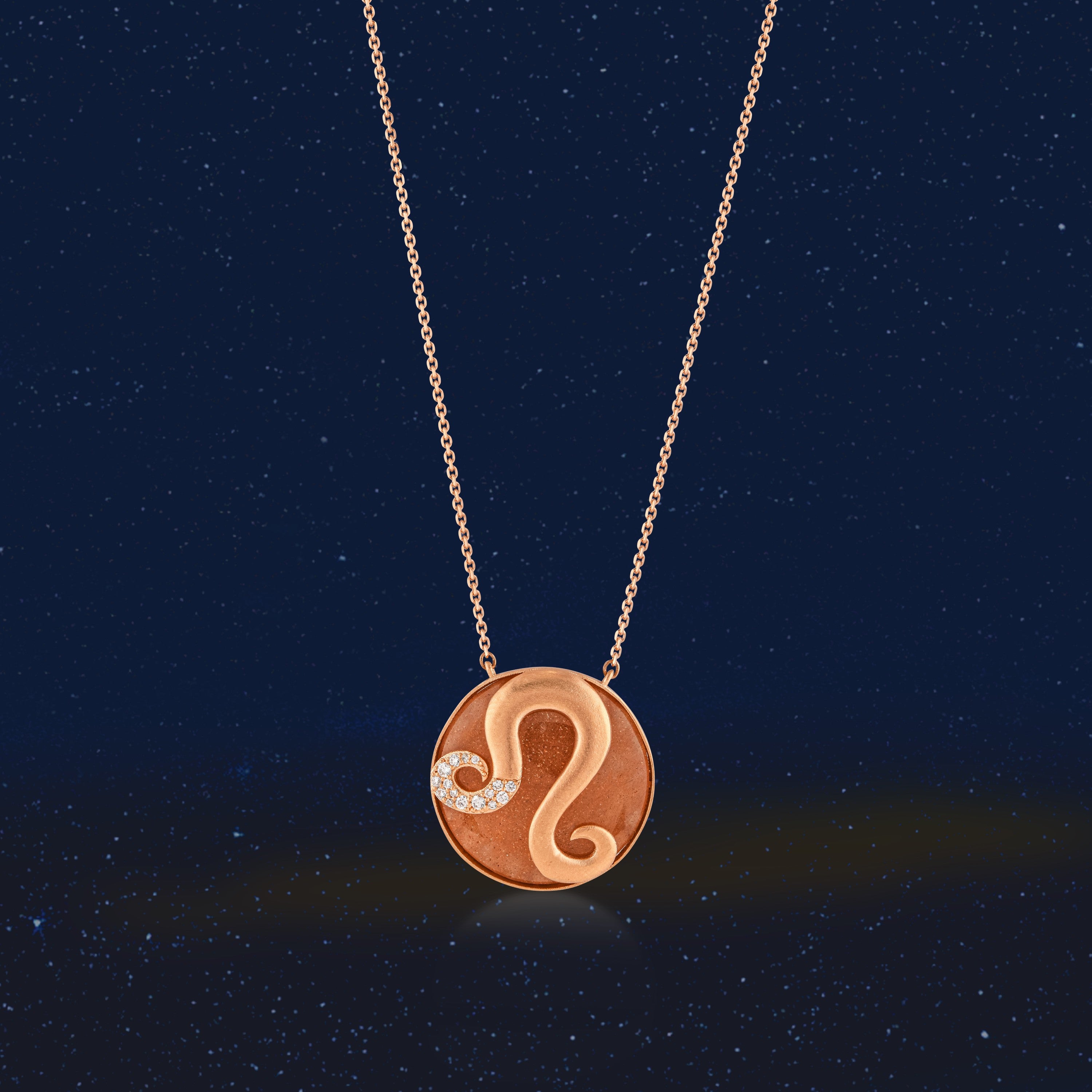 LEO SUNSTONE AND DIAMOND STONE GOLD ZODIAC NECKLACE