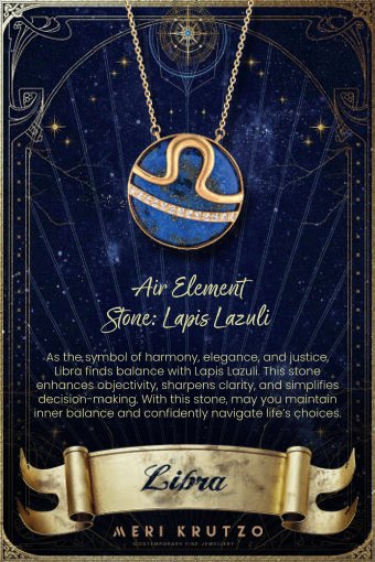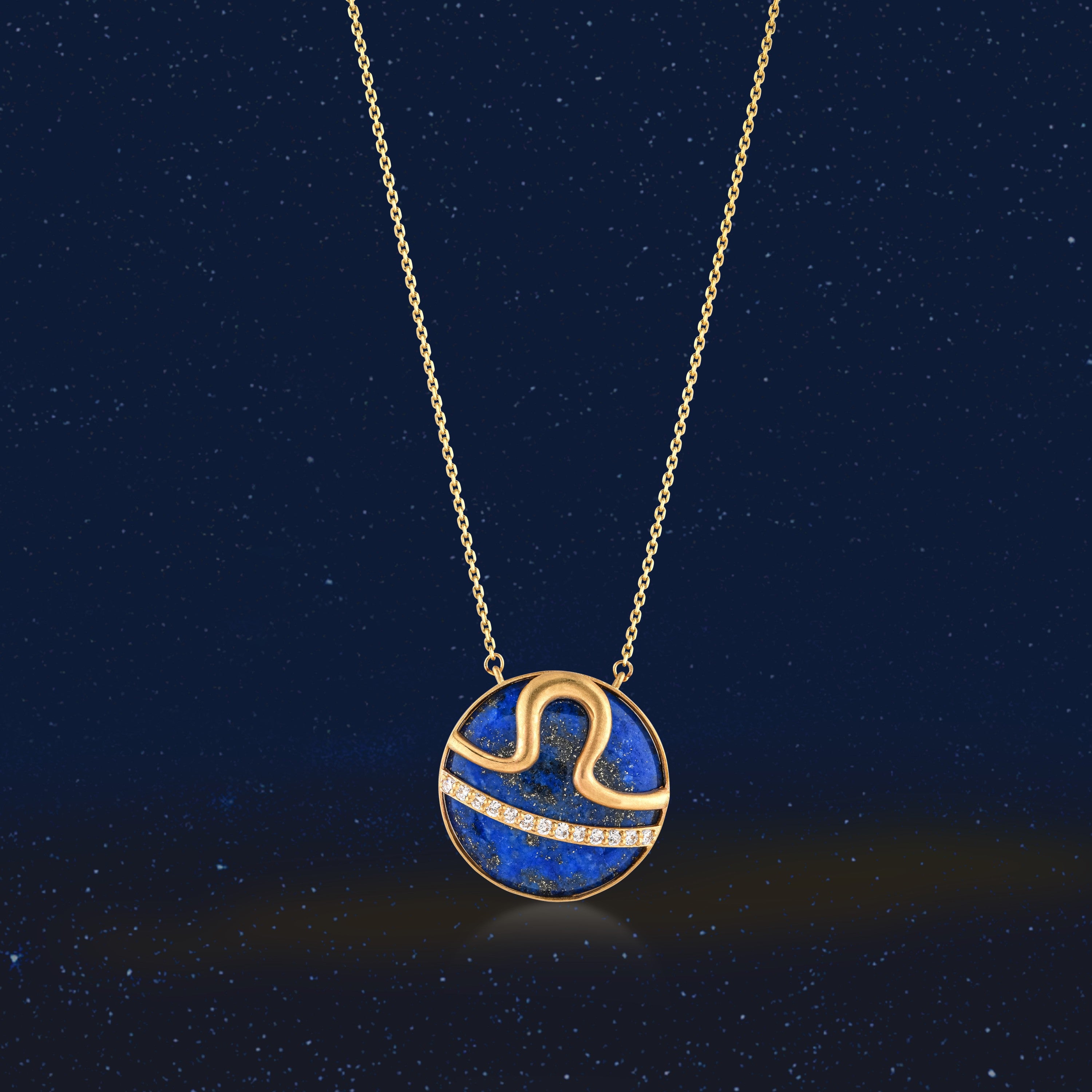 LIBRA LAPIS LAZULI AND DIAMOND STONE GOLD ZODIAC NECKLACE
