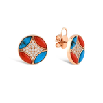 CORAL AND TURQUOISE DIAMOND GOLD EARRINGS - WHISPERING LOTUS