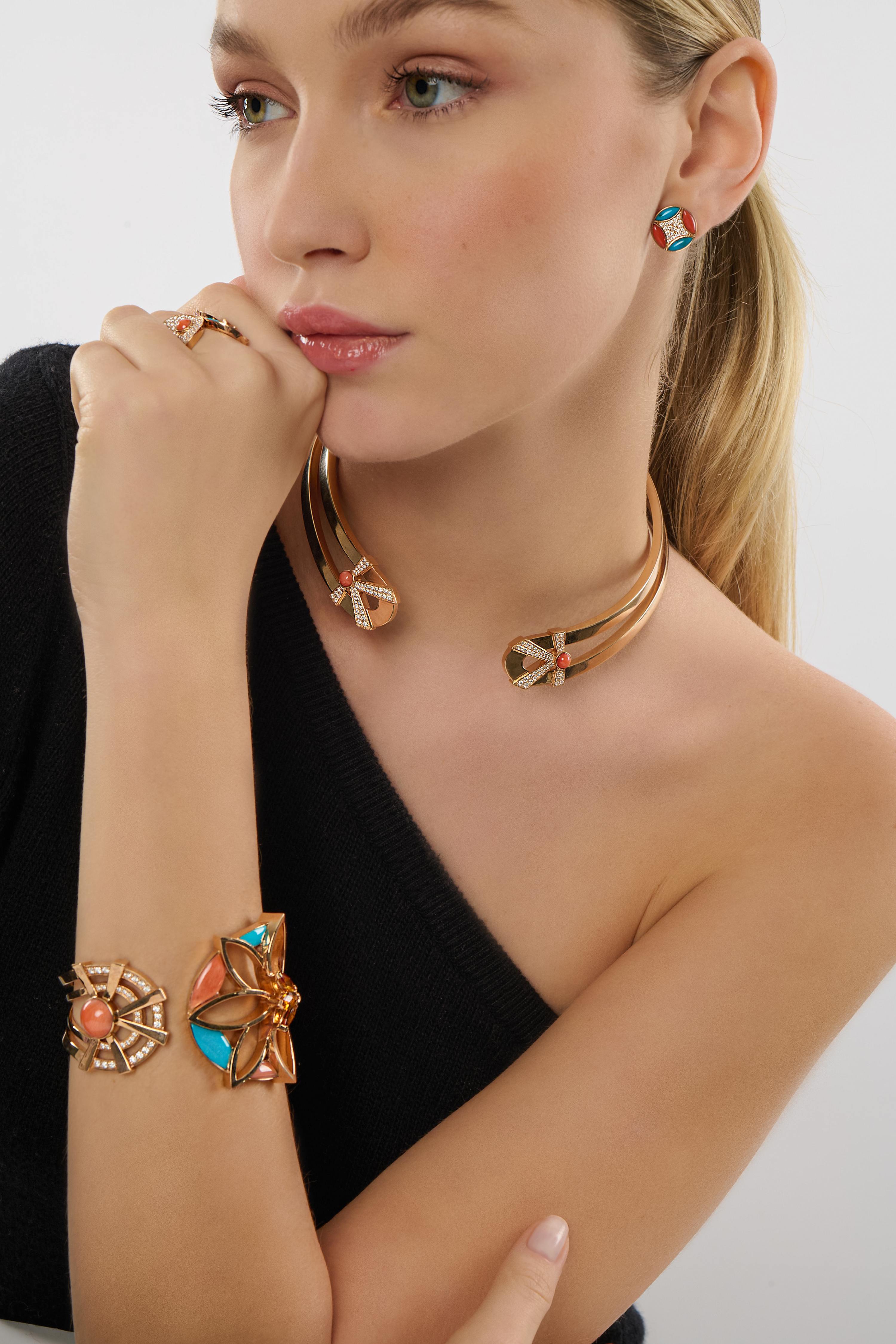 The "Whispering Lotus" earrings were designed to combine the sparkle of diamonds with the natural energy of coral and turquoise. Inspired by the whisper-light yet profound power of the lotus flower, this special piece aims to nourish the soul with its elegance and bring inner balance and light to the woman who wears it.