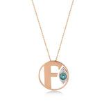 LETTER F, DIAMOND STONE AND LARGE EVIL EYE BEADED GOLD NECKLACE - ME COLLECTION