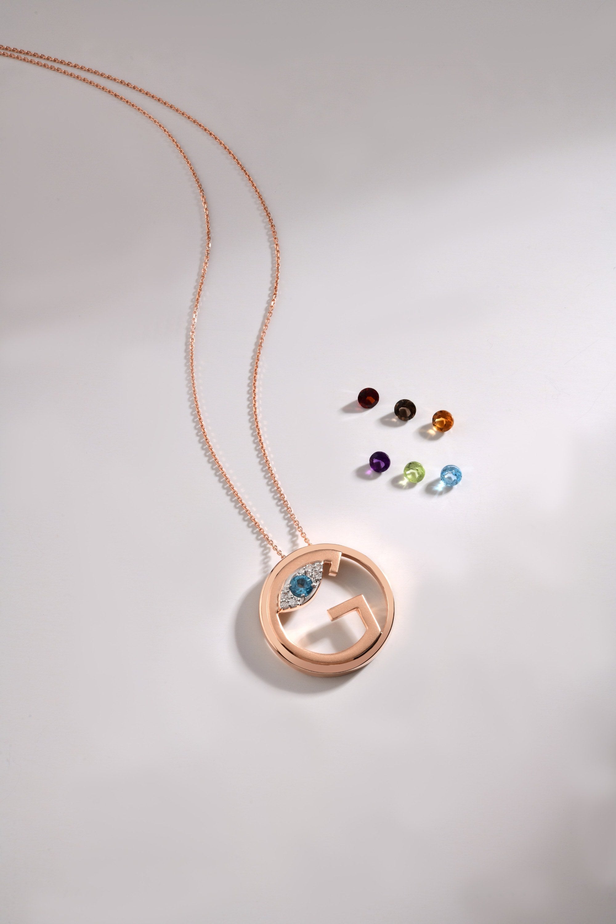 MINI G LETTER GOLD NECKLACE WITH DIAMONDS AND COLORED STONES - ME MINI LETTER COLLECTION