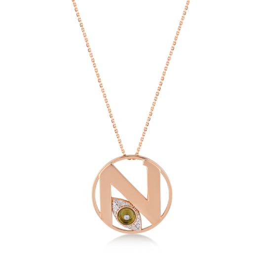 LETTER N, DIAMOND STONE AND LARGE EVIL EYE BEADED GOLD NECKLACE - ME COLLECTION