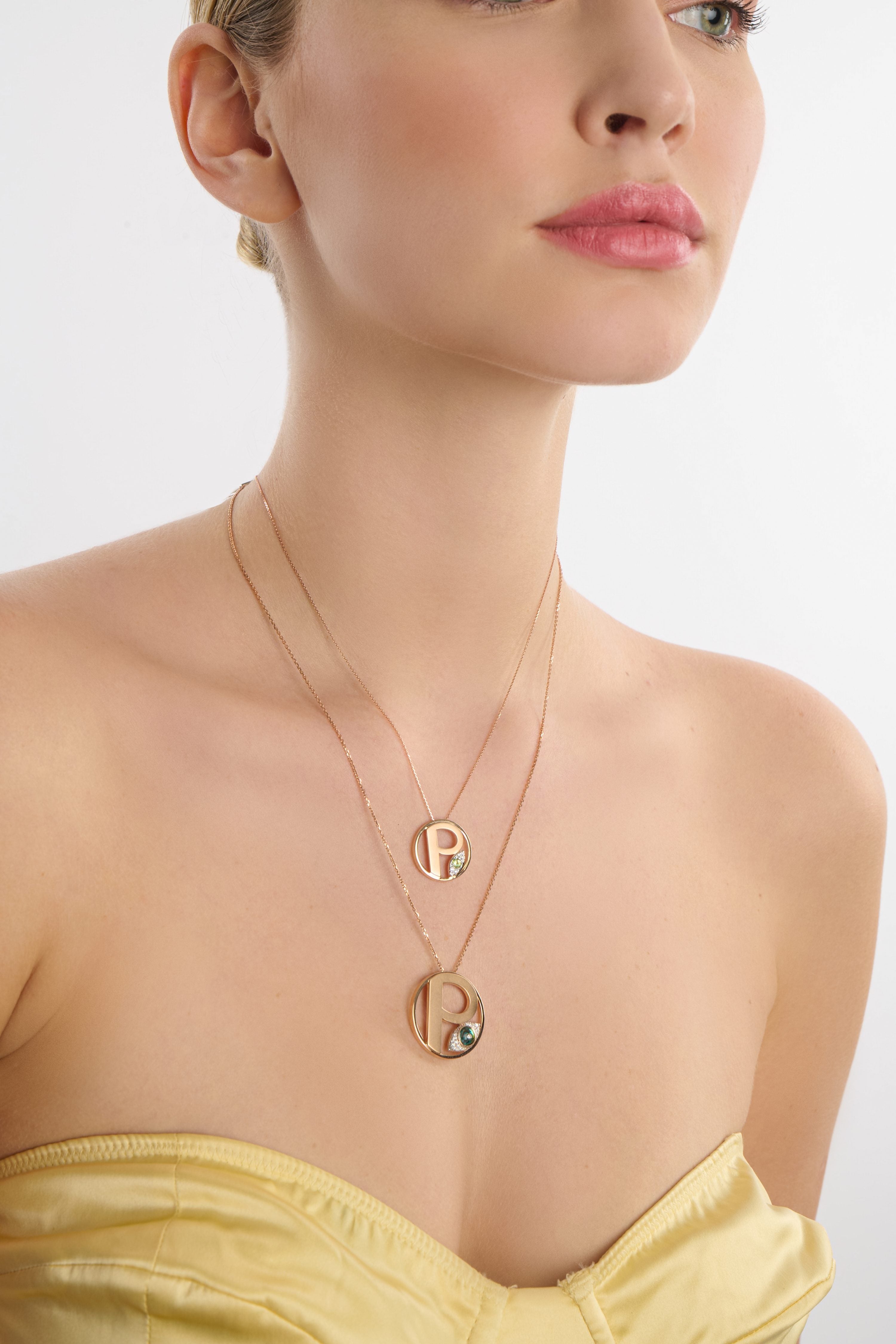 LETTER P, DIAMOND STONE AND LARGE EVIL EYE BEADED GOLD NECKLACE - ME COLLECTION