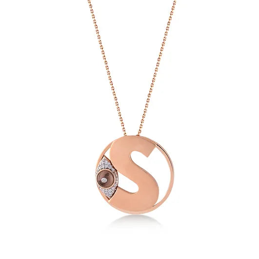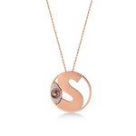 LETTER S, DIAMOND STONE LARGE EVIL EYE BEADED GOLD NECKLACE - ME COLLECTION