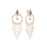 AMETHYST, DIAMOND AND GREEN STONE DANGLE GOLD HOOP EARRINGS - CONNECTION