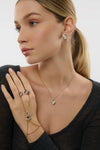 The “Lotus Radiance” necklace was designed by combining the natural sparkle of gray and white mother-of-pearl stones with the elegant shine of diamonds.