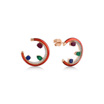 ORANGE ENAMELED GOLD HOOP EARRINGS WITH SAPPHIRE, EMERALD, RUBY AND DIAMOND STONES - ROUTINE BREAKER