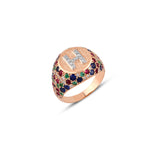 H LETTER GOLD RING WITH DIAMOND, SAPPHIRE, RUBY AND EMERALD STONES - SACRED COLLECTION
