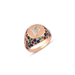 P LETTER GOLD RING WITH DIAMOND, SAPPHIRE, RUBY AND EMERALD STONES - SACRED COLLECTION