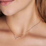The "Shiny V" necklace from the Meri Krutzo "Fulcrum" collection symbolizes balance;