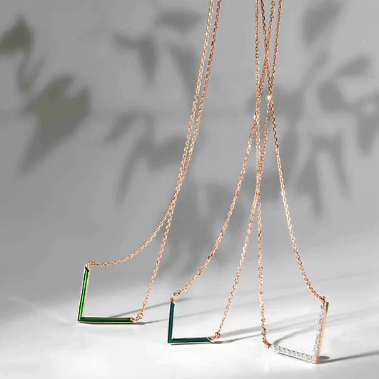 GOLD NECKLACE WITH DIAMOND STONE - SHINY TRIANGLE