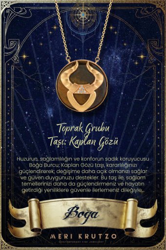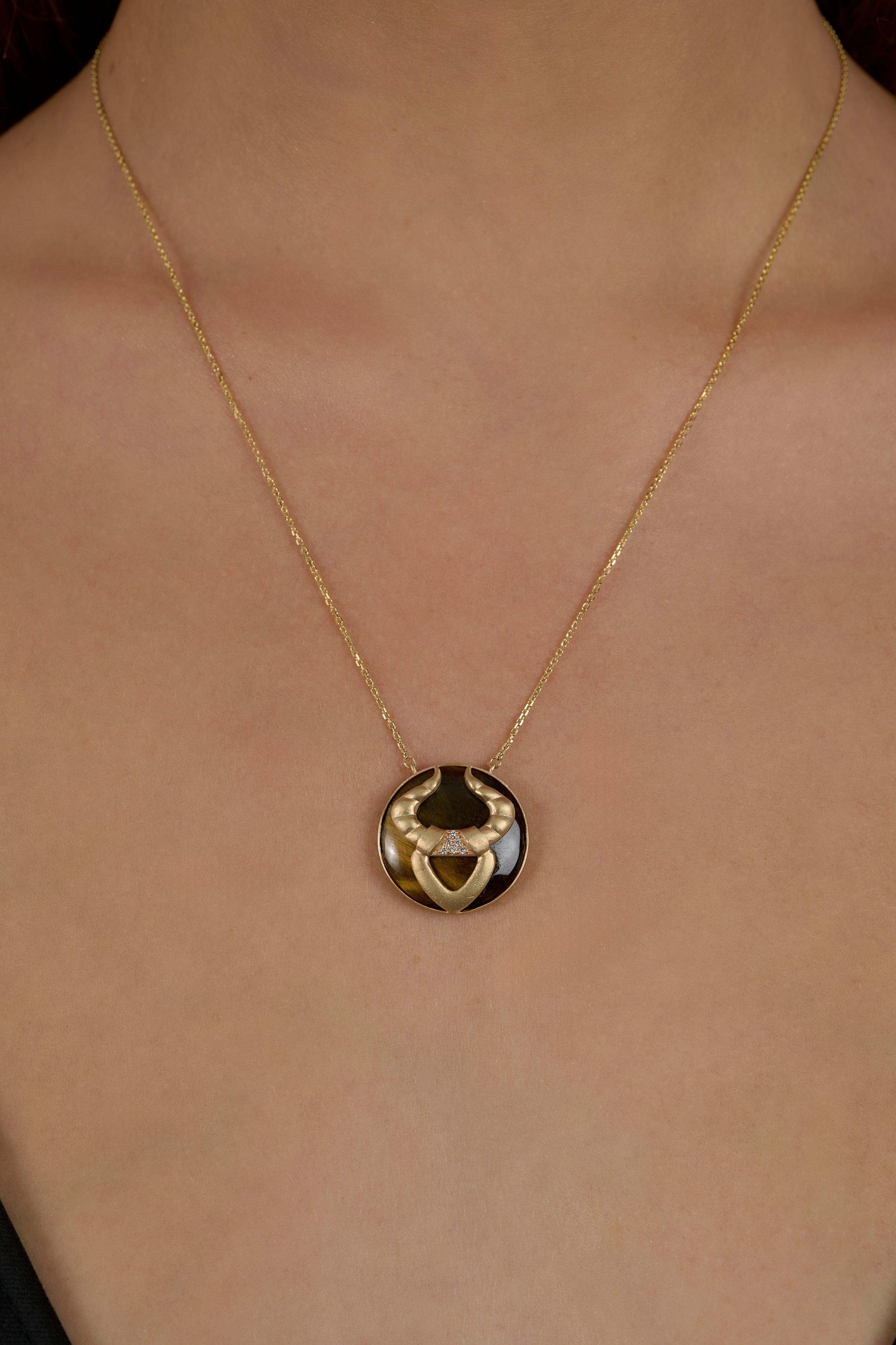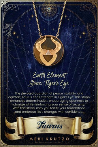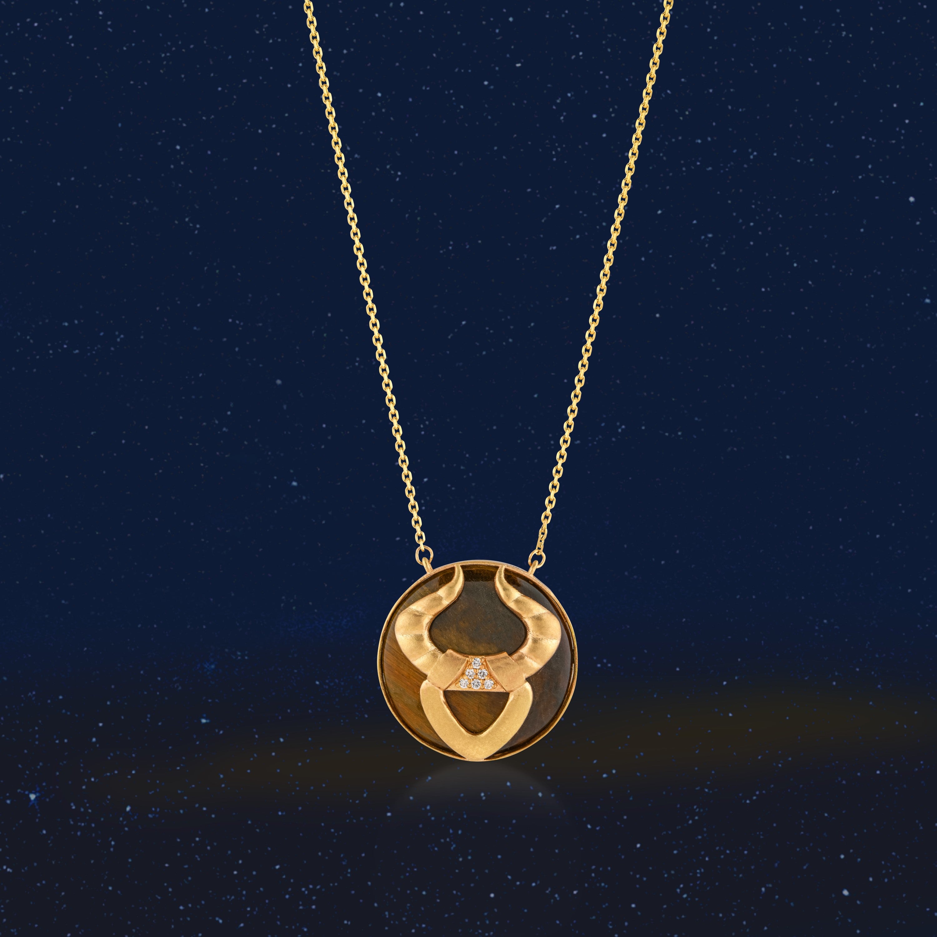 TAURUS TIGER EYE AND DIAMOND STONE GOLD ZODIAC NECKLACE