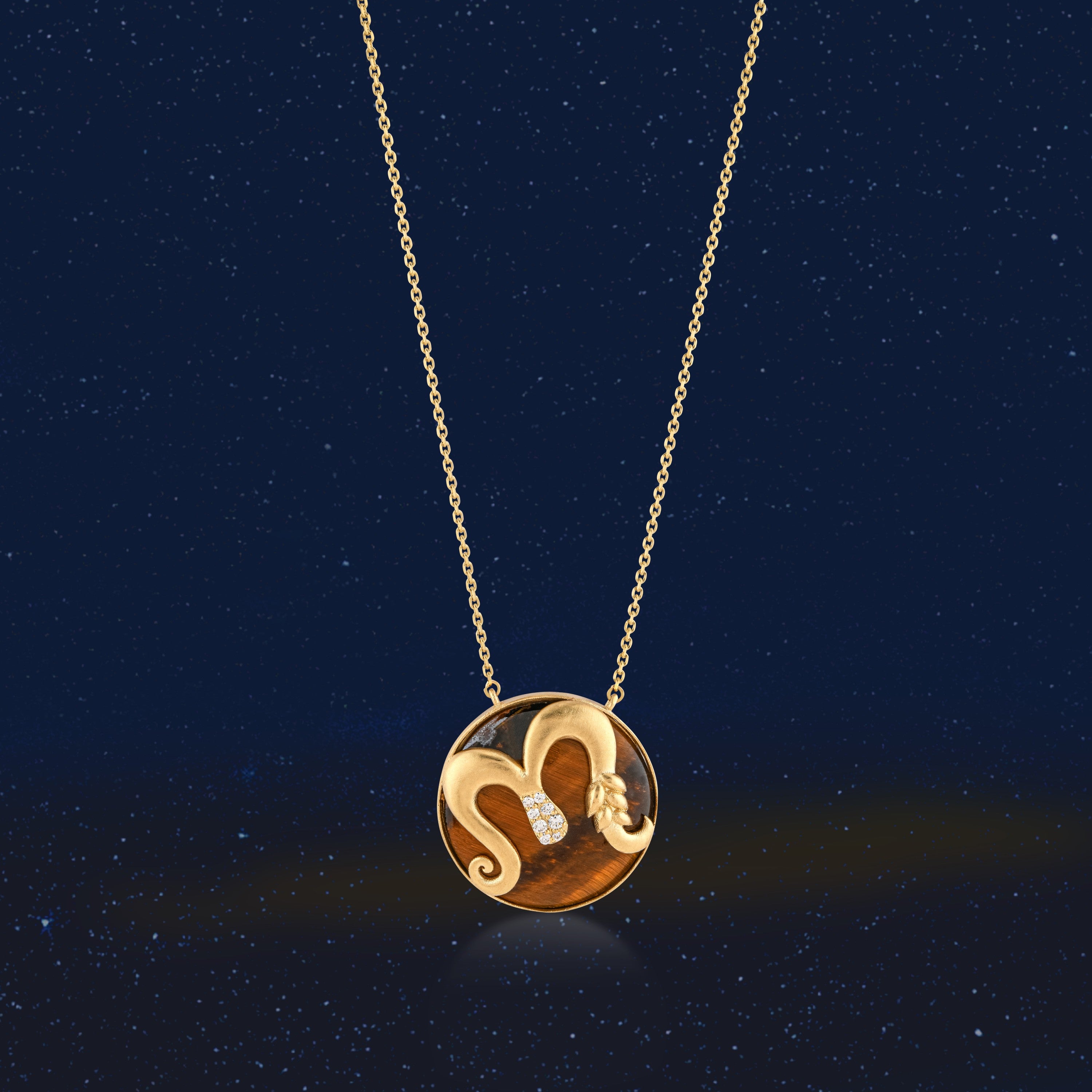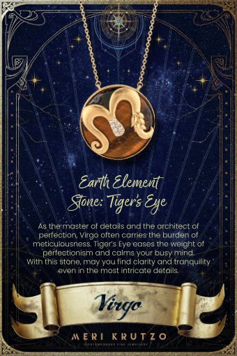 VIRGO TIGER EYE AND DIAMOND STONE GOLD ZODIAC NECKLACE
