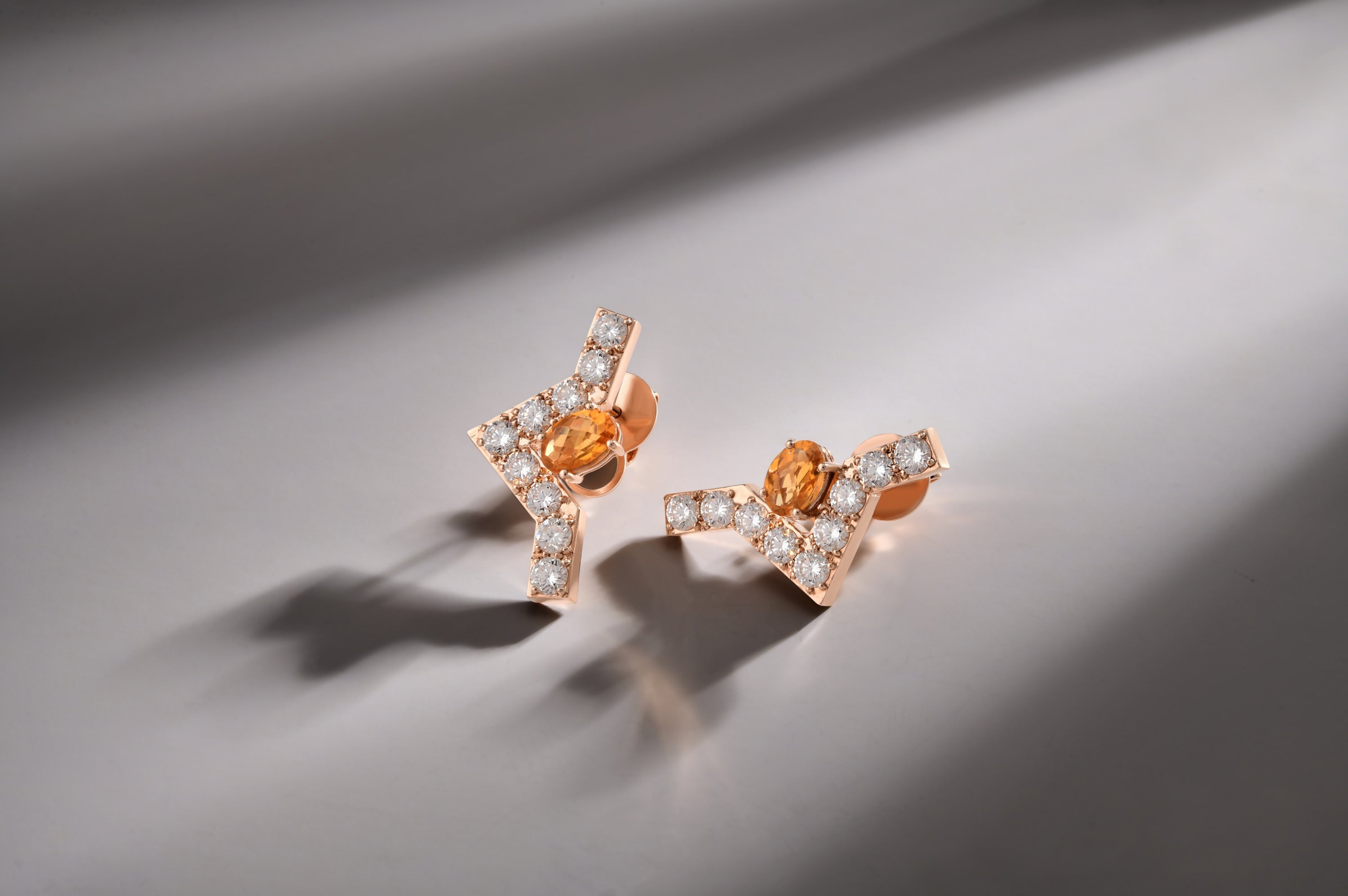 Dengeyi sembolize eden Meri Krutzo “Fulcrum” koleksiyonunun “Balance” küpeler, pırlanta ve sitrin taşıyla tasarlanmıştır.