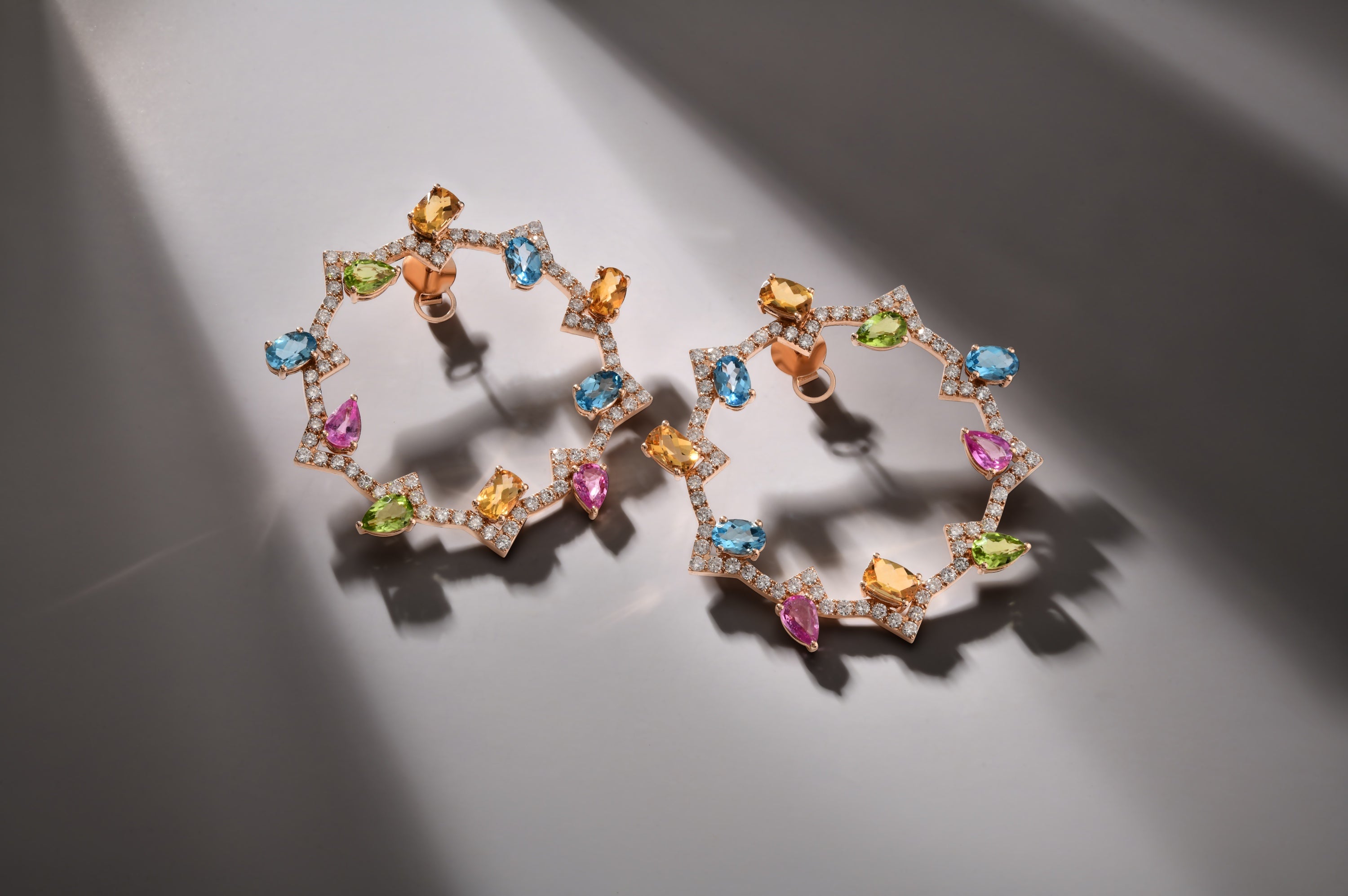 ÇOK RENKLI VE PIRLANTA TAŞLI ÇIFT TASARIM ALTIN KÜPE - COLOR DREAM