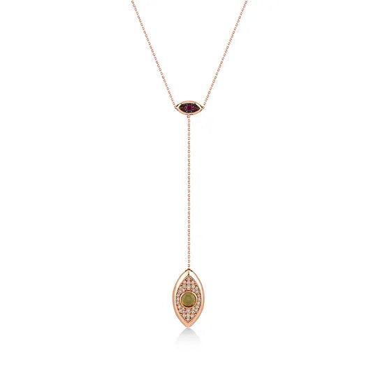 YAKUT,PIRLANTA VE YEŞIL TAŞLI ALTIN GÖZ KOLYE - CONNECTION