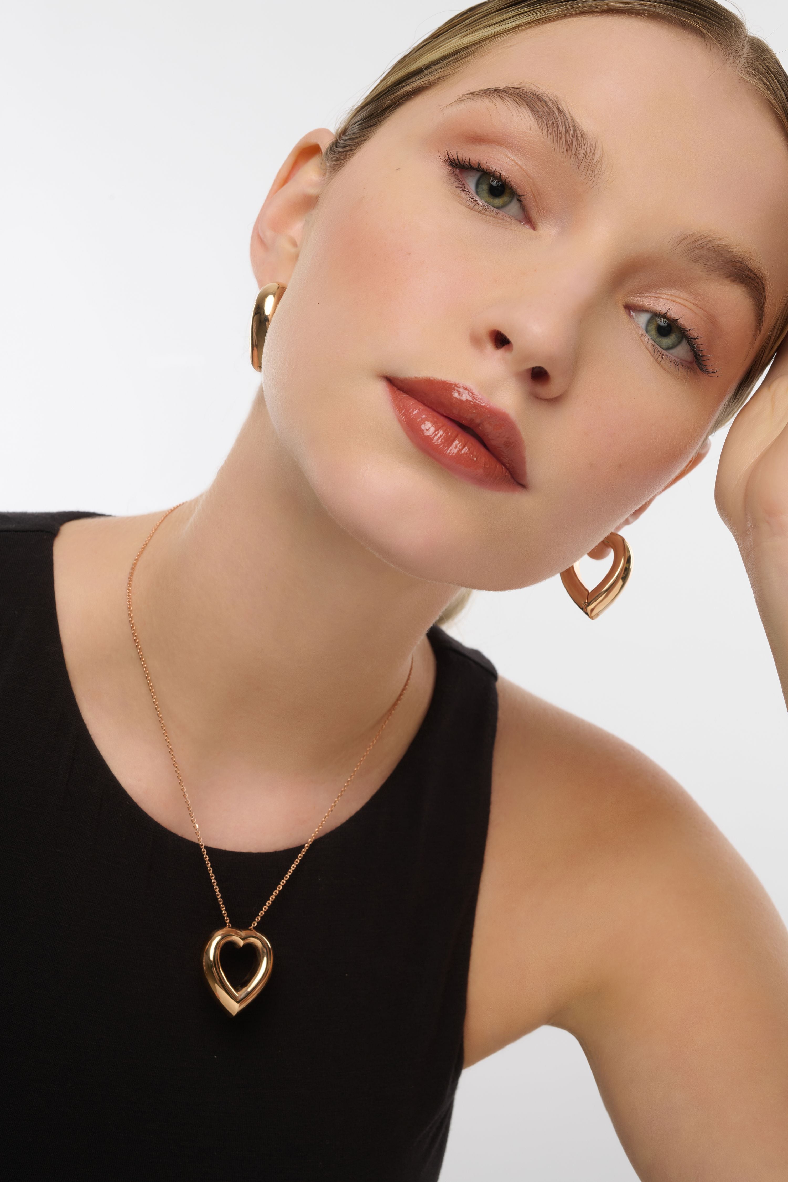 Saflığın gücünü temsil eden Meri Krutzo “Goldie” koleksiyonundan "Goldie Lover” küpeler bombeli kalp tasarımıyla saf altının, zamansız ve modern çizgisini yansıtıyor.